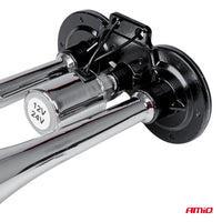 Goarnă pneumatică de înaltă calitate, dublă, profesională, cromată, potrivită pentru instalații de 12V și 24V.