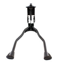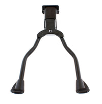 Un suport metalic, dublu pentru biciclete, conceput pentru montarea între roata din spate a unei biciclete. Fixat cu un șurub în mod standard. Piciorul are tampoane anti-alunecare și un arc puternic. Picioarele duble oferă mult mai multă stabilitate decât picioarele standard! Setul include un distanțier suplimentar care protejează cadrul bicicletei de zgârieturi.