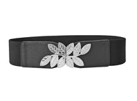Curea elastica lata, culoare neagra, cu catarama metalica FRUNZE