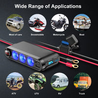 Creșteți confortul și eficiența încărcării în mașină cu ajutorul nostru inovator despărțitor de priză pentru brichetă. Acest produs de neînlocuit oferă până la trei porturi USB și un port USB-C, precum și un voltmetru încorporat, care vă permite să încărcați mai multe dispozitive în același timp și să monitorizați tensiunea vehiculului. Obțineți încărcare rapidă și liniște sufletească la fiecare călătorie!