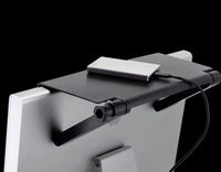 Un raft convenabil, compact, conceput pentru a fi montat pe partea superioară a cadrului televizorului sau a monitorului LCD. Vă permite să economisiți spațiu pe birou și masă într-un mod inteligent. Instalarea foarte simplă și neinvazivă previne deteriorarea echipamentului. Mânerul reglabil vă permite să schimbați unghiul raftului și să îl reglați în spatele ecranului. Un gadget perfect care vă permite să stocați în mod convenabil telecomanda televizorului sau alte obiecte mici.