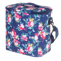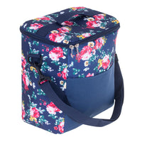Geanta termoizolanta pentru picnic sau plaja, capacitate 11l, culoare Albastra cu flori
