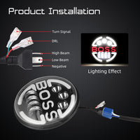 Lampa Suplimentara LED pentru Vehicule Off-Road, ATV, SSV, cu inscriptie "BOSS" si functii: Faza Lunga, Faza Scurta, Semnalizare, Pozitie, tensiune alimentare 9 - 36V, diametru Ø170 mm