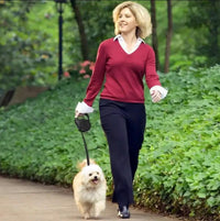 O lesă automată confortabilă și compactă pentru câini. Prevazut cu o curea foarte puternica cu carabina, de pana la 5 metri lungime. Mecanismul durabil și mânerul puternic oferă animalului o mare libertate, reducând în același timp riscul de rupere a lesei. Sistemul simplu de pliere și blocare permite operarea cu o singură mână (buton deasupra mânerului).
