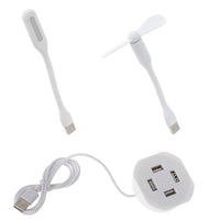 Setul include, de asemenea, un ventilator și o lampă - ambele articole au un conector USB pentru a le putea conecta la panoul USB.