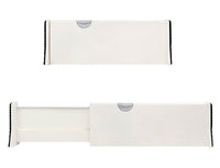 Organizator de sertar pliabil, extrem de practic. Despărțitorul vă permite să vă organizați colecția de produse cosmetice sau lenjerie intimă într-un mod simplu și ieftin, împărțind sertarul în două părți de orice dimensiune. Posibilitatea de pliere și desfacere a lățimii de la 28 cm la 43 cm împreună cu un mecanism solid de blocare permite separatorului să se potrivească perfect sertarului.