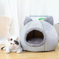 - Pat pentru animale în formă de cabină închisă cu urechi de pisică.