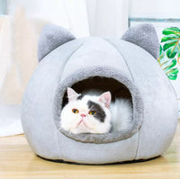 - Pat pentru animale în formă de cabină închisă cu urechi de pisică.