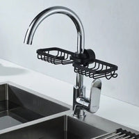 - Un organizator universal de bucătărie conceput pentru a fi atârnat direct pe robinet.