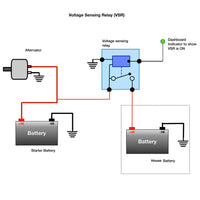 ✔【Controlează încărcarea】- Releul sensibil la tensiune detectează automat nivelul de tensiune al bateriei de pornire, 13,3 V Cut In și 12,8 V Cut Out. Când motorul este pornit și bateria de pornire ajunge la 13,3 V, izolatorul „se întrerupe”. Când tensiunea bateriei de pornire scade la 12,8 V, izolatorul „se oprește”.