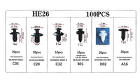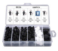 Set de 100 de clipsuri universale pentru mașină. Setul include 6 cele mai populare tipuri de cleme, sortate în 10 și 20 de bucăți. O carcasă convenabilă, compactă, cu compartimente, împiedică amestecarea elementelor setului. Toate camerele carcasei sunt semnate, ceea ce facilitează găsirea clemei potrivite.