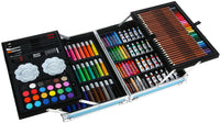 Set 145 piese pentru pictura, pentru copii sau adulti, pixuri de colorat, creioane colorate si vopsele de pictura, cu geanta de transport ALBASTRA, model AVX-WT-RUBENS145