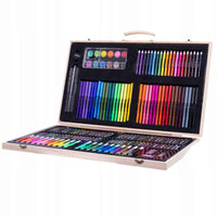 Set 180 piese pentru desen pentru copii sau adulti, creioane colorate, vopsele si markere, cu geanta de transport din LEMN MASIV, model AVX-WT-ART-10