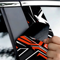 Set 2 folii printate outdoor pentru colantarea stâlpilor ușilor autoturismului dvs. Folia imprimată cu EcoSolvent Outdoor aderă pe orice suprafață plană, netedă. În cazul suprafețelor rugoase, aderența produsului va scadea considerabil.