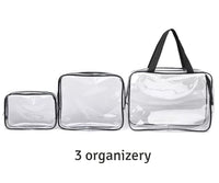 Set 3 organizatoare de cosmetice, transparente, ideale pentru calatorii