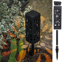 Lămpi solare de grădină pentru a fi introduse în pământ ambalate într-o cutie de carton.