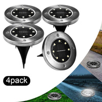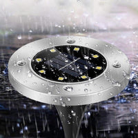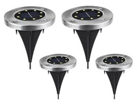 Set de 4 lumini solare de gradina in forma de disc. Lămpile sunt echipate cu 8 LED-uri alimentate cu energia solară de la panoul solar (încărcarea bateriei încorporate). Dispozitivul pornește automat când se întunecă (este echipat cu senzor crepuscular), iar o încărcare completă a bateriei este suficientă pentru până la 8 ore de funcționare continuă. Este un decor grozav de grădină, cu un finisaj estetic al cadru metalic.