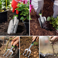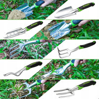 Set de 5 unelte de grădină de înaltă calitate . Acest set complet a fost atent selectat pentru a vă ajuta să vă cumpărați și să vă înfrumusețați grădinile. Fiecare unealtă este fabricată din materiale solide care oferă rezistență și durabilitate pentru a dura mulți ani. Fie că ești un grădinar cu experiență sau un începător, aceste instrumente sunt o alegere excelentă pentru oricine dorește să creeze o grădină frumoasă și bine întreținută.