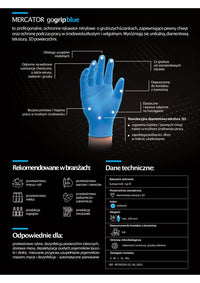 Sunt de 3 ori mai groase decât mănușile standard disponibile pe piață. Sunt fabricate din nitril rezistent . Se caracterizează prin flexibilitate ridicată , rezistență ridicată la întindere și o textură unică de diamant 3D , care face prinderea puternică și stabilă , fără a limita precizia. Structura originală MERCATOR® gogrip face posibilă operarea dispozitivelor mobile fără a scoate mănușile și previne transpirația mâinilor în timpul utilizării, ceea ce mărește confortul de lucru și minimizează riscul de deteriorare a pielii mâinilor.