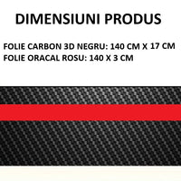 Sticker autoadeziv Tuning, model "Rally Stripe Carbon 3D", dimensiune 140 x 17 cm, culoare Negru/Rosu
