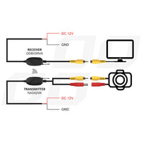 Emițătorul și receptorul folosesc frecvențe radio de 2,4 GHz și transmit fără fir semnalul video captat de camera de marșarier către orice recorder. În condiții optime (fără interferențe), semnalul poate fi transmis pe o distanță de până la 50 de metri. Utilizarea unui transmițător fără fir facilitează instalarea camerei de vedere spate și nu este necesară tragerea de cabluri suplimentare prin interiorul vehiculului.