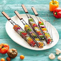 Ustensila de tip "cos" cu maner pentru preparat legume la gratar